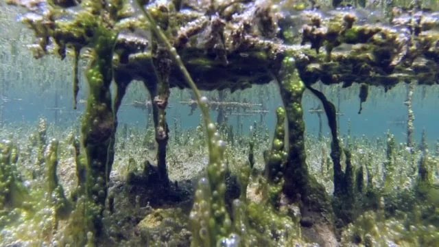 Anabaena is one of the major toxic cyanobacteria species in the Eel River watershed. It often forms in warm edge-waters in dark green spires on beds of dying green algae. As Anabaena creates dissolved oxygen during the day, segments float and are carried downstream and can form deadly scums. Although the lower South Fork Eel River is most prone to Anabaena blooms, they also occurred in other areas in years with low flow.