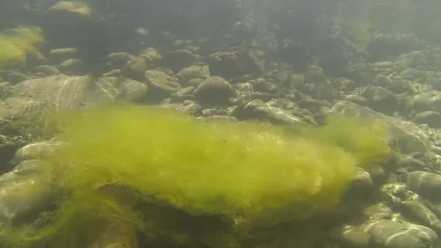 Another potentially toxic cyanobacteria species inhabiting the Eel River that can tolerate stream current and cold water temperatures is Microcoleus, which until recently was known as Phormidium. Known to occur in nutrient poor reaches as a film on rocks, Microcoleus can become shaggy in the presence of excess nitrogen. The species has a rare ability to fix phosphorous that is often most limiting to plants. Blooms of Microcoleus between Scott Dam and Cape Horn Dam were linked to a canine mortality in 2016.